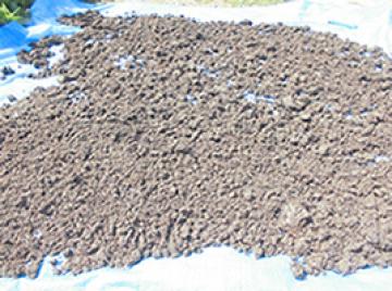 田んぼの土をブルーシートの上に広げて乾かしました。
