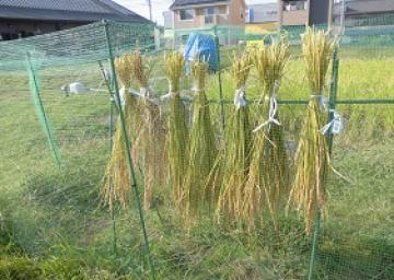 ひもを結ぶ時は稲が抜け落ちないようにきつく結び、風通しがよく、雨の当たらないところで乾かし、ネットで囲う等、スズメ対策を行ってください