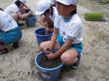 土の種類は培養土等いろいろありますが、お米づくりには田んぼの土が一番適した土です。